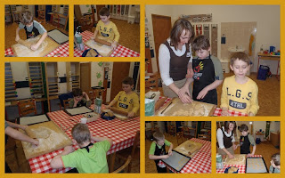 Dnes jsme si o pracovním vyučování upekli velikonoční perníčky, vyvalovali jsme těsto a pak vykrajovali vajíčka, ovečky, kuřátka, beránky.... Šlo nám to moc dobře.