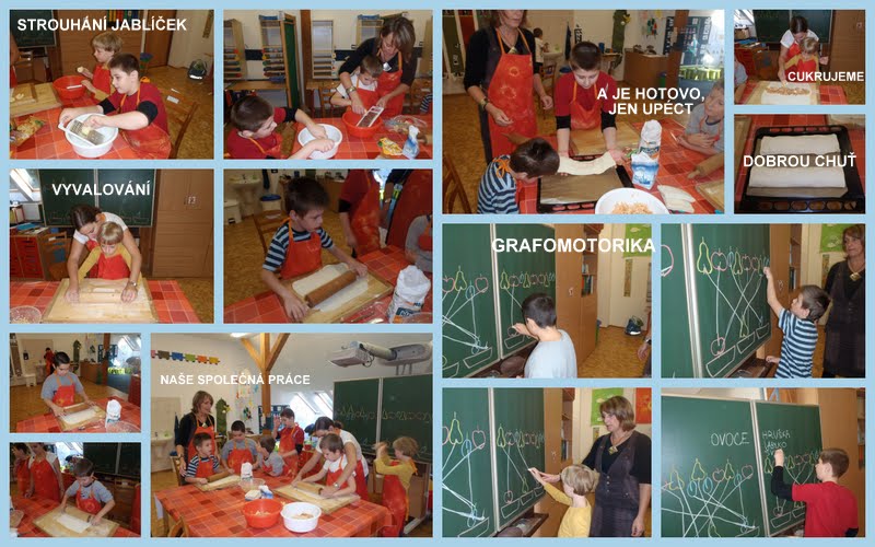 A proto jsme si dnes společně upekli jablečný závin. Práce se nám dařila a děti byly moc šikovné.